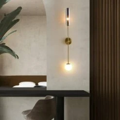 Applique Murale Design à LED Dorée Avec Tige Doré Et Verre Nordic