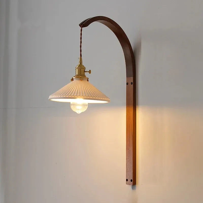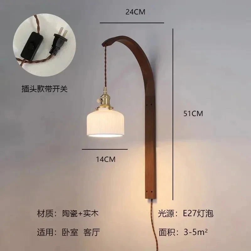 Japanese wooden wall light mid century Swing Folding lamp ceramics lampshade Bedroom Bedside Vintage Retro reading light