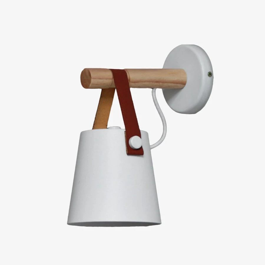 Avec une simple lanière en cuir marron, l’applique est déposée sur la barre en bois, pour un style raffiné.