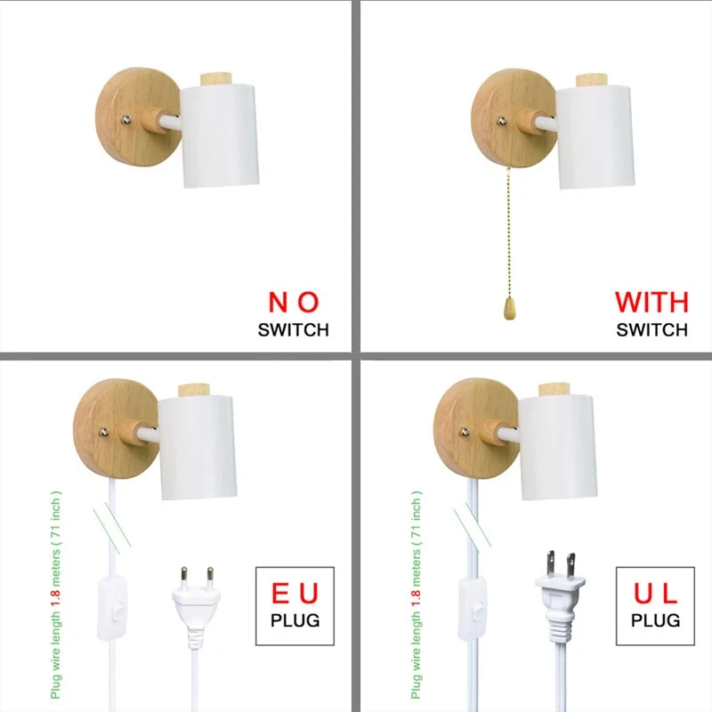 Nordic Wall Light Bedside Wall Lamp With Switch EU/UL Plug Macaron Gu10 Luster Sconce Study Bedroom Modern DecorLighting Fixture