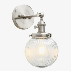 PhansthyVintage Industrial Wall Sconce Lighting Fixture with Mini 5.9″ Round Clear Globe Ribbed Glass Shade (Chrome)