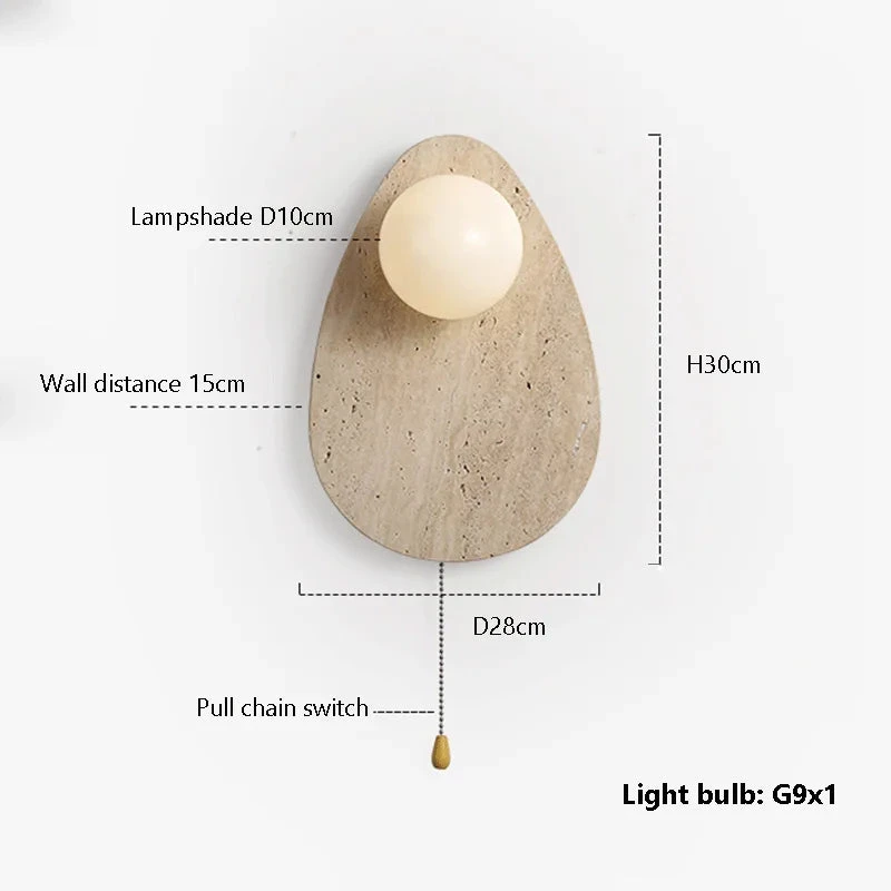 Vintage Natural Stone Art Decoration Wall Lamp Interior Glass Lampshade Led Light with Pull Chain Bedroom Decor Sconce