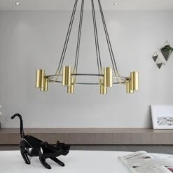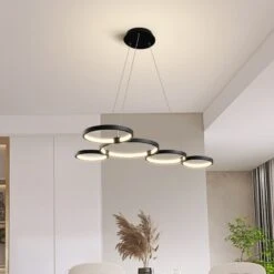 Lustre Moderne Et Design LED Avec Cercle Noir Et Spots Dorés