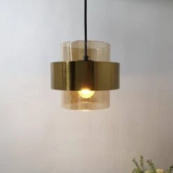 Suspension Design LED Avec Verre En Forme De Crystal Et Tige Dorée Loft