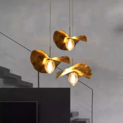 Lustre Nordique En Cuivre Forme De Feuille De Lotus Suspendu