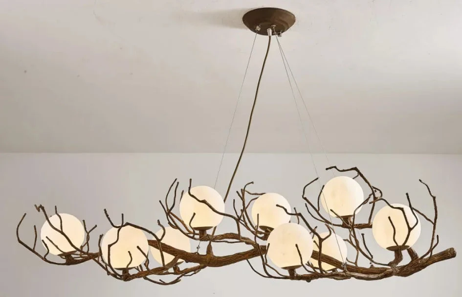 Le lustre se distingue par son design inspiré de la nature, évoquant la délicatesse des branches. Fabriqué en fer de haute qualité, il assure une durabilité tout en conservant une légèreté visuelle. Le verre dépoli qui compose les abat-jours diffuse une lumière agréable, créant un effet lumineux tamisé. Ce mélange de matériaux apporte une sensation de chaleur et de confort, en parfaite harmonie avec des styles variés tels que le scandinave, l’industriel ou encore le moderne.
