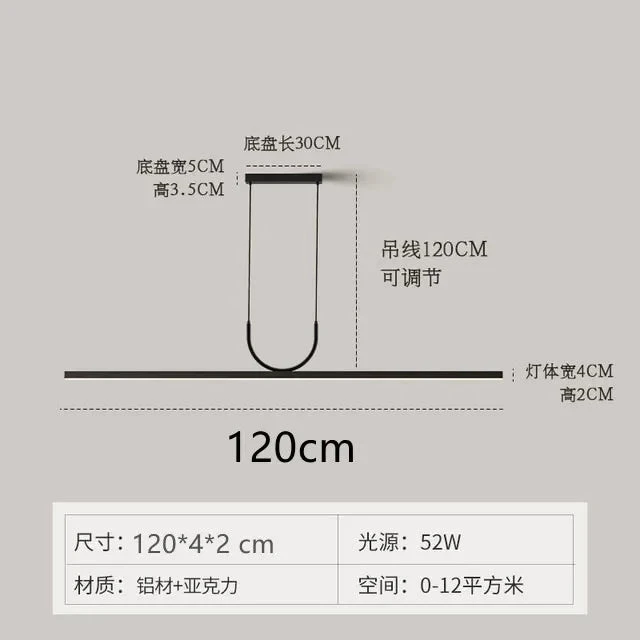 Modern Minimalist Strip Led Pendant Lights for Living Dining Room Kitchen Black Chandelier Home Decor Hanging Light Fixture