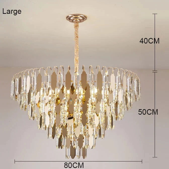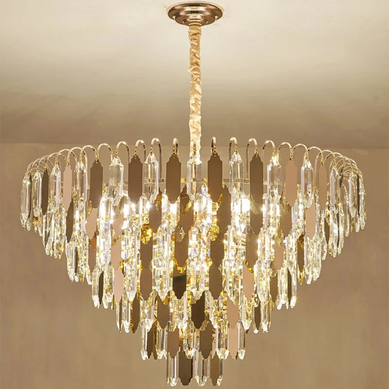 Le lustre moderne en cristal doré se distingue par son design raffiné et ses finitions impeccables. Sa structure en acier inoxydable poli confère une robustesse exceptionnelle tout en ajoutant une brillance éclatante à votre espace. Les détails en cristal doré capturent la lumière de manière spectaculaire, créant des reflets chaleureux et accueillants. Que vous souhaitiez illuminer un dîner romantique ou créer une atmosphère conviviale lors de vos réceptions, ce lustre saura s’adapter à toutes vos envies.