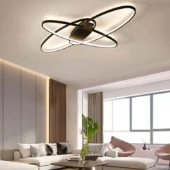 Modern Black/White 3 Staggered Long Ellipses LED Ceiling Light with Remote Control for Dining Room Bedroom