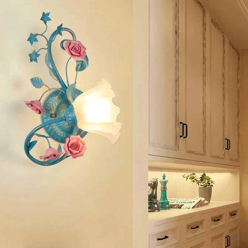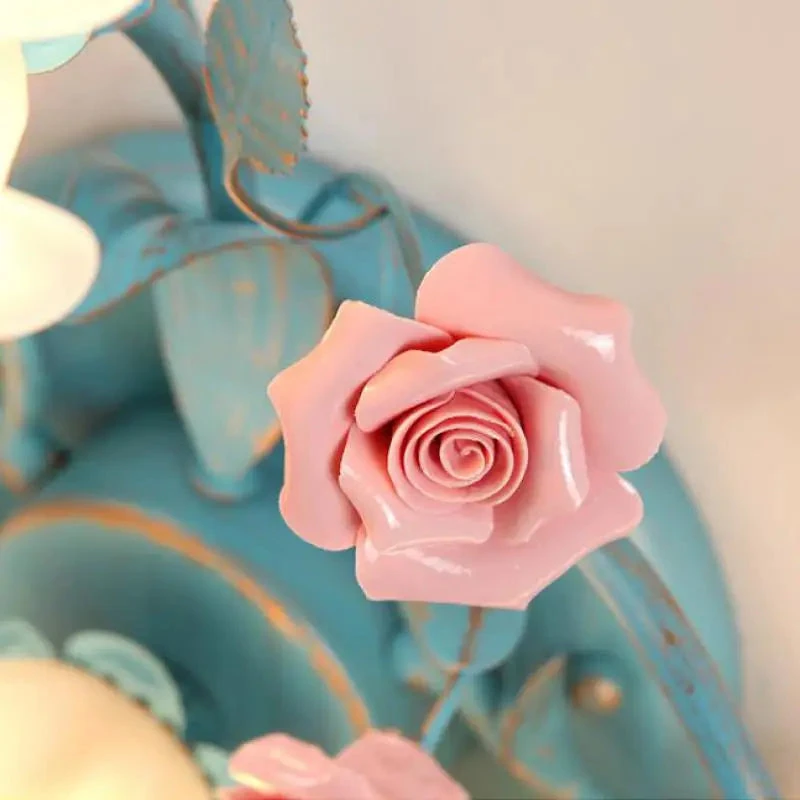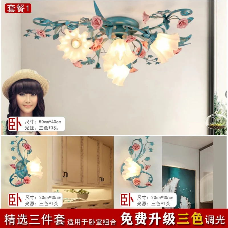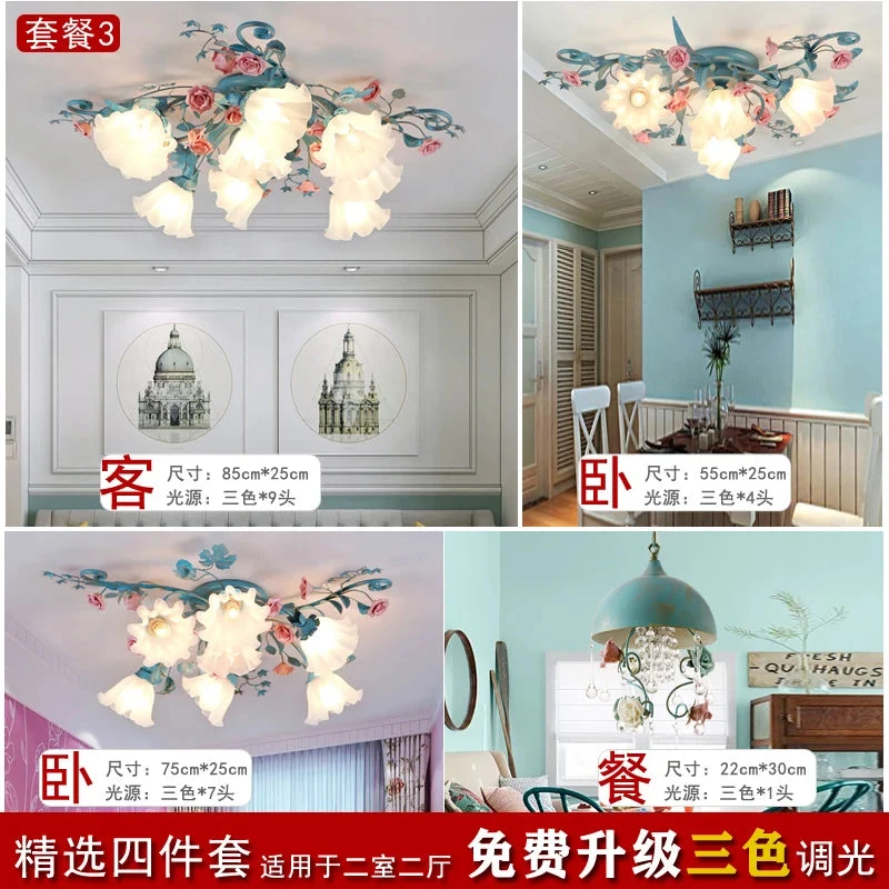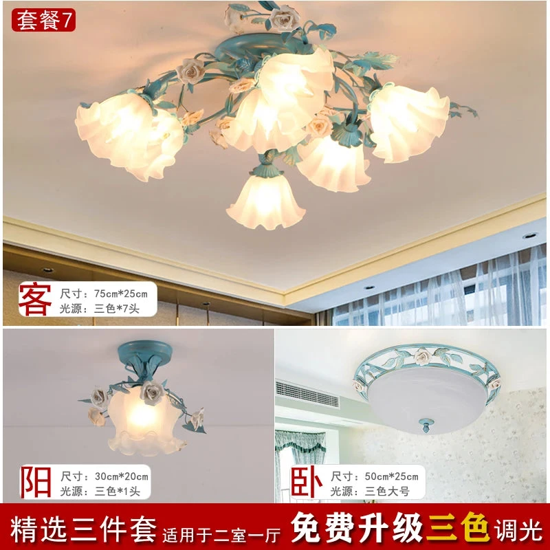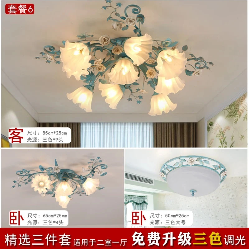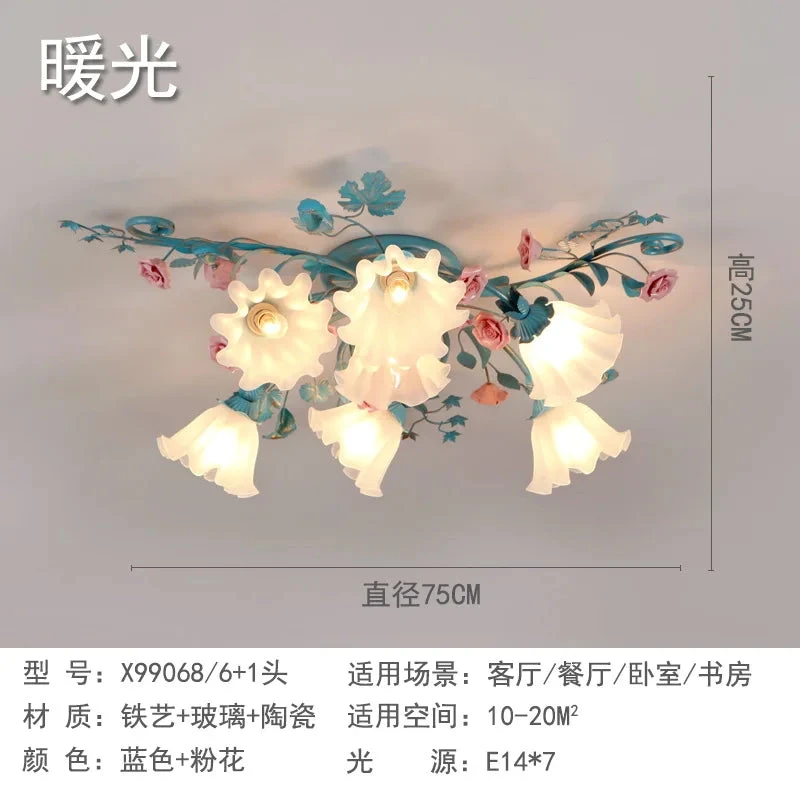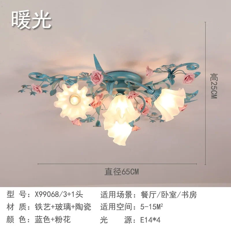 French Pastoral Ceiling Lamp Living Room Blue Retro Bedroom Light Ceramic Flower Led Chandelier Warm Flowers And Plants Lighting