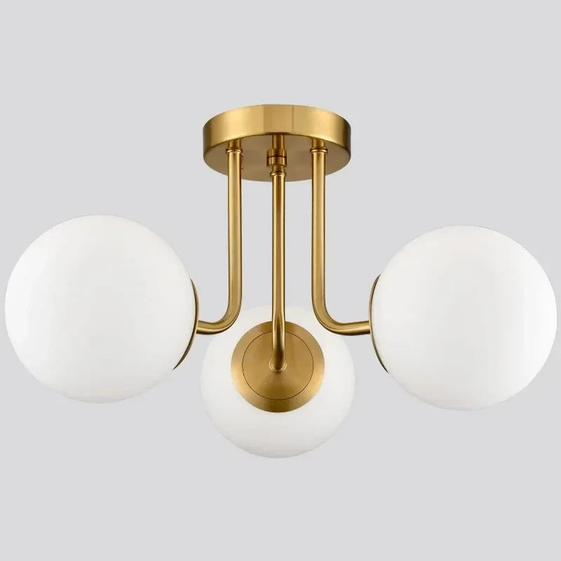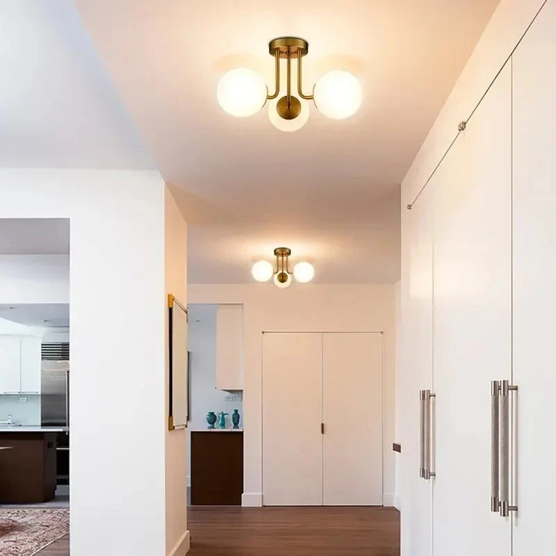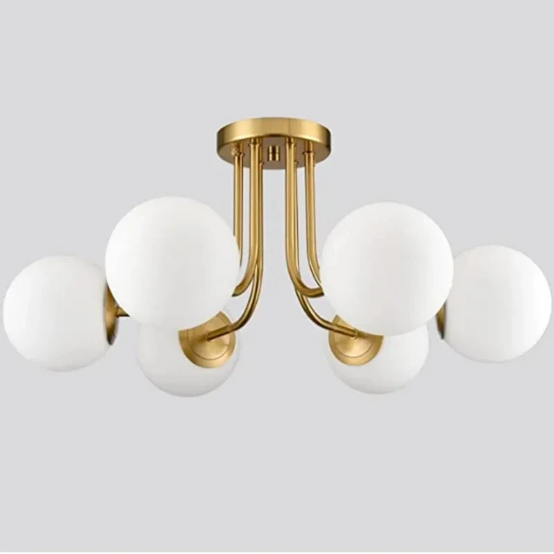 Nordic Simple Modern Living Room Light Spherical White Glass Lampshade Semi-recessed Ceiling Light Golden Magic Bean Lamps