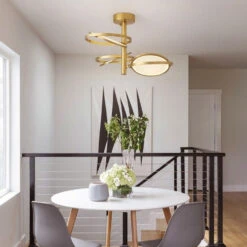 Lustre Design à LED Avec Bras Articulés Dorés Et Lampes Noires