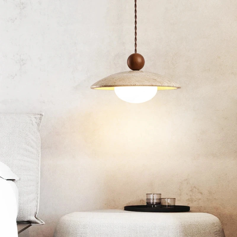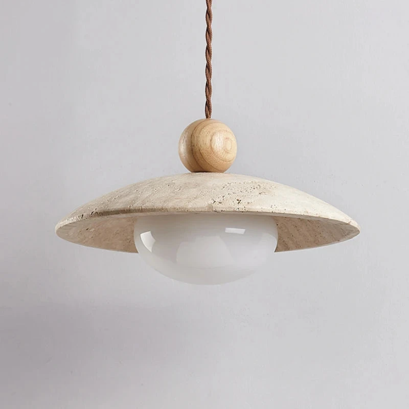 Stone LED Pendant Lights Nordic Room Decor Retro Wood Restaurant Bedroom Living Room Light Home Decoration UFO Shape Chandelier