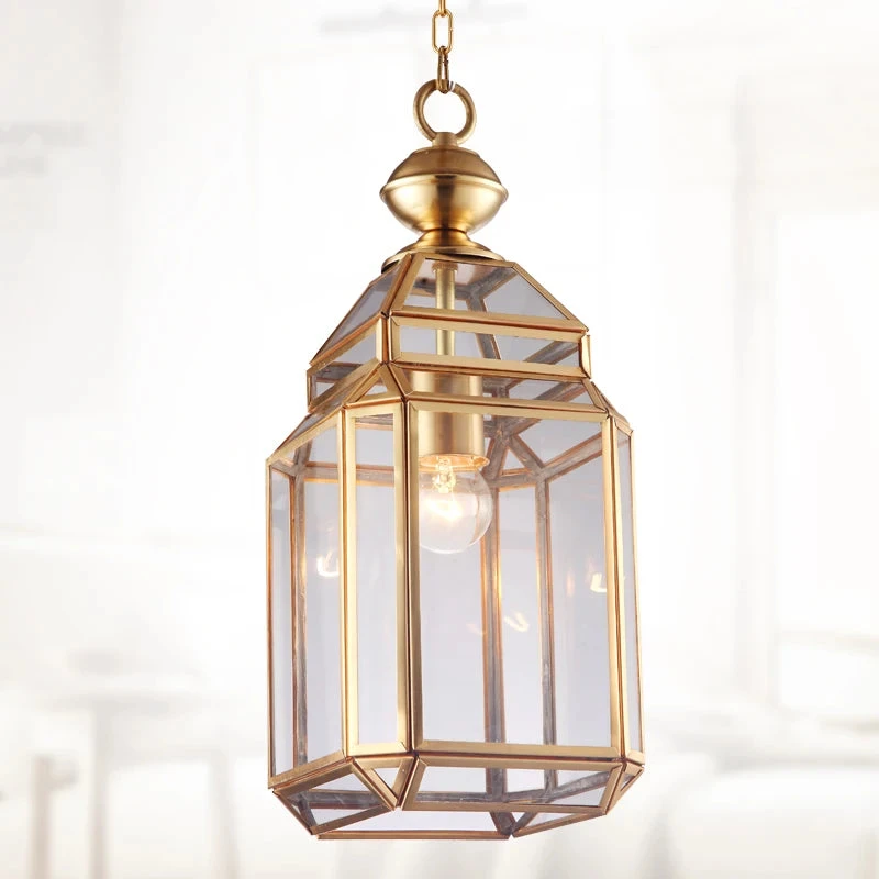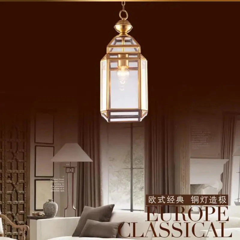 Milan style Copper pendant lamp Yard 1 pcs glass shade pendant light shopcase light E27 industrial Rural Corridor Kitchen Light