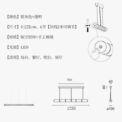 Art studio Loft LED Glass pipe pendant lamp luminaire Restaurant house deco Long LED strip Chandelier office study home lighting