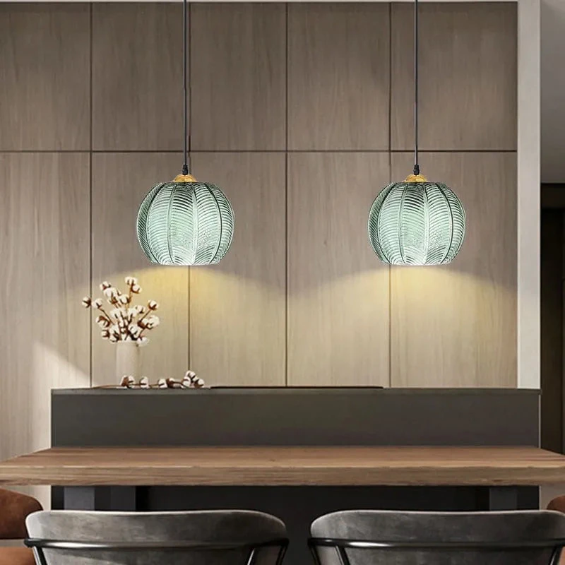 Nordic Glass Pendant Light Green Leaf Pattern Lighting For Living Room Dining Room Hotel Study Bedroom Indoor Decorative Fixture