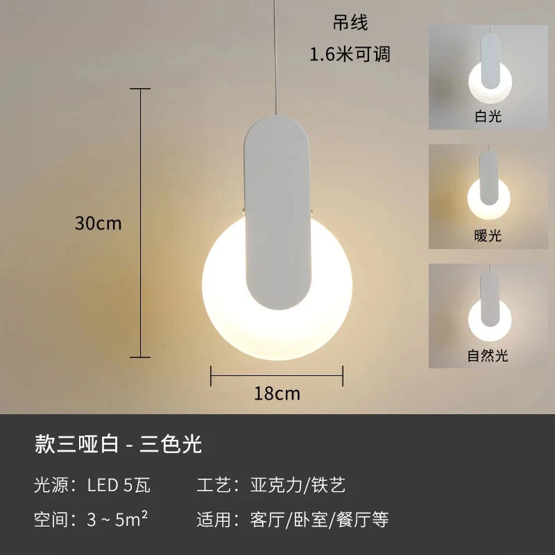 Modern Symmetry Geometric Pendant Lights Nordic Acrylic LED Moon Hanging Lamps Bedside Livingroom Cafe Decor Lighting Fixtures