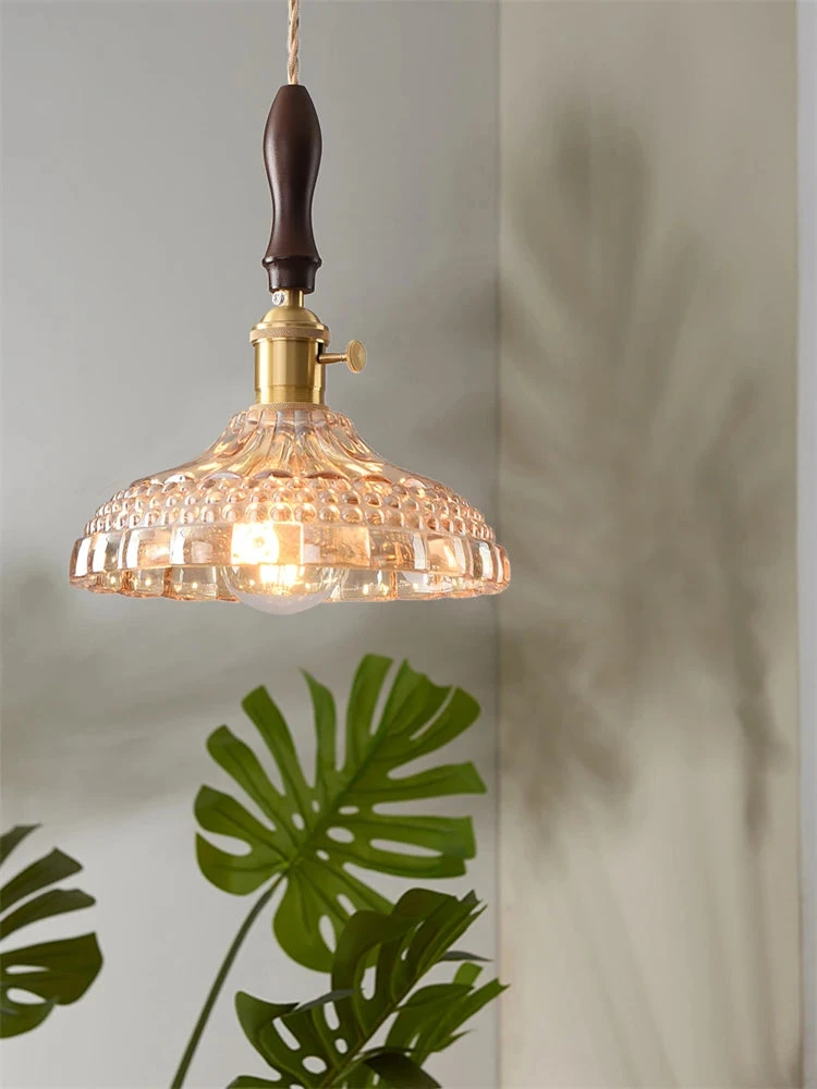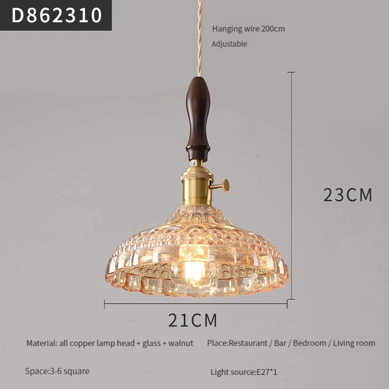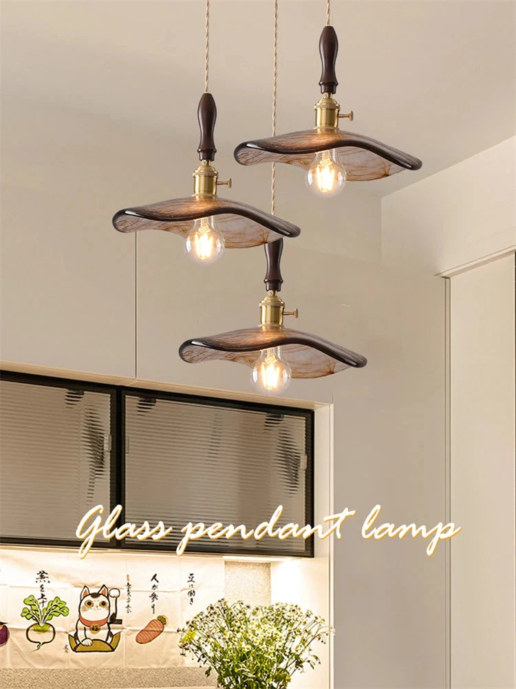Modern Brass Pendant Light Rustic Walnut Glass Shade Kitchen Island Dining Table Hanging Lamp Ceiling Room Suspension Chandelier